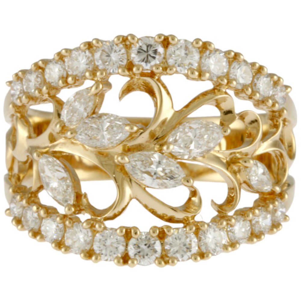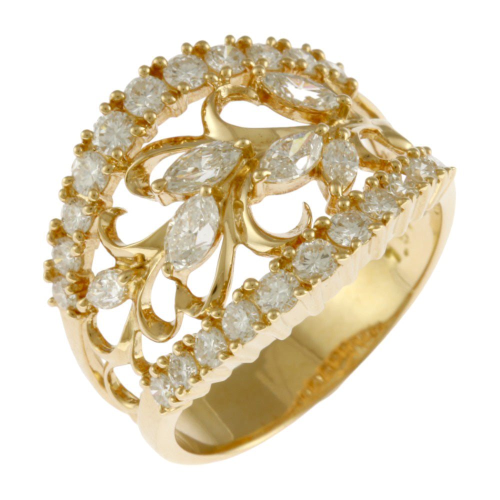 トータル1.57ctの上質なダイヤモンドを贅沢に使用したイエローゴールドリングです。