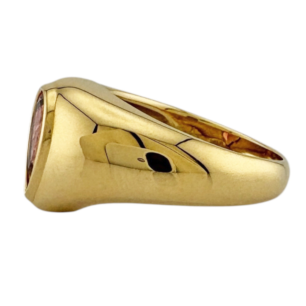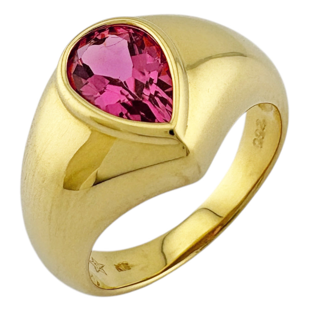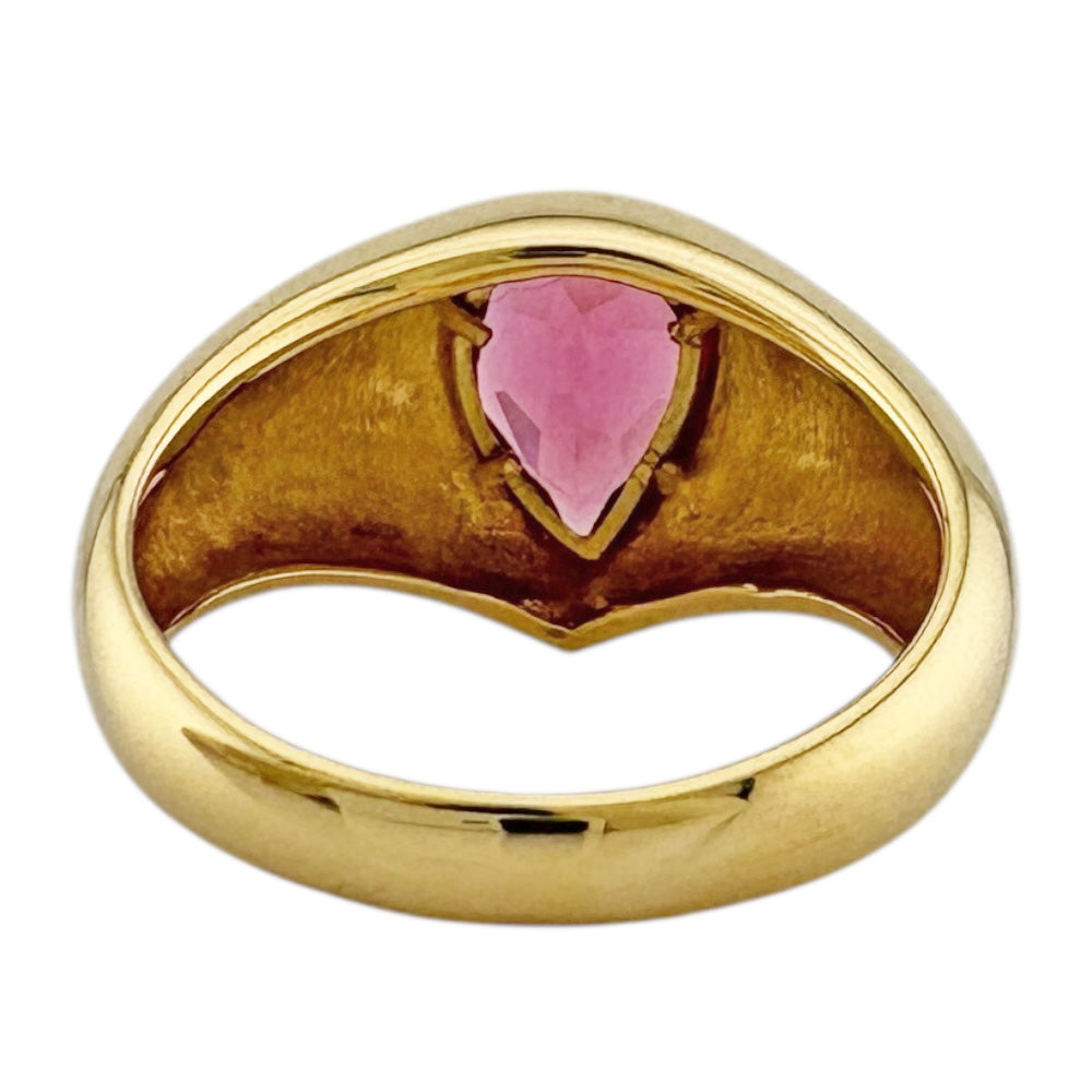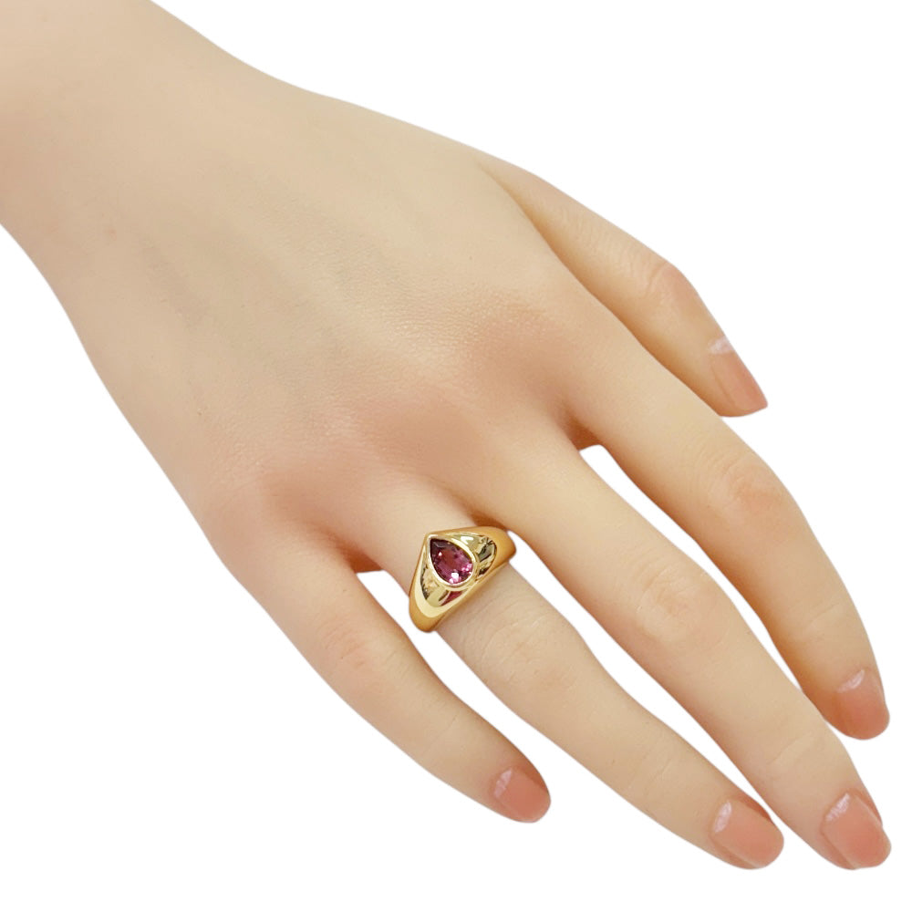 18金イエローゴールドのなめらかなフォルムに、鮮やかなティアドロップカットのピンクトルマリンが美しく輝くリングです。個性的なデザインが、手元を一層華やかに演出します。