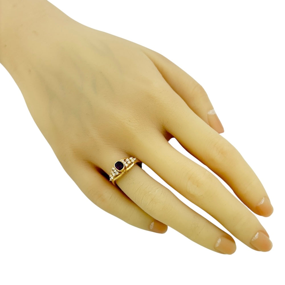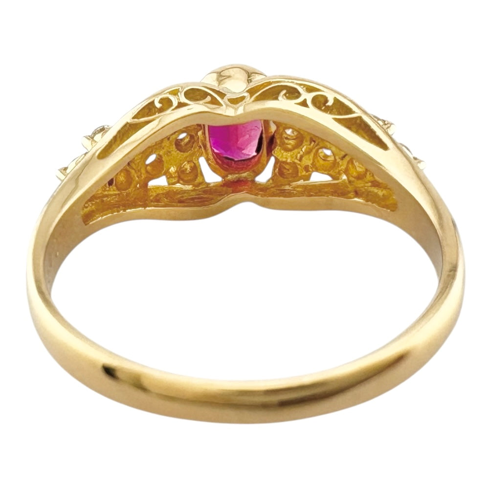 鮮やかなルビーの赤とダイヤモンドの輝きが、手元を華やかに彩ります。流れるようなデザインが指を美しく見せ、エレガントな印象を演出。特別な日のおしゃれにはもちろん、日常を彩るアイテムとしてもおすすめです。