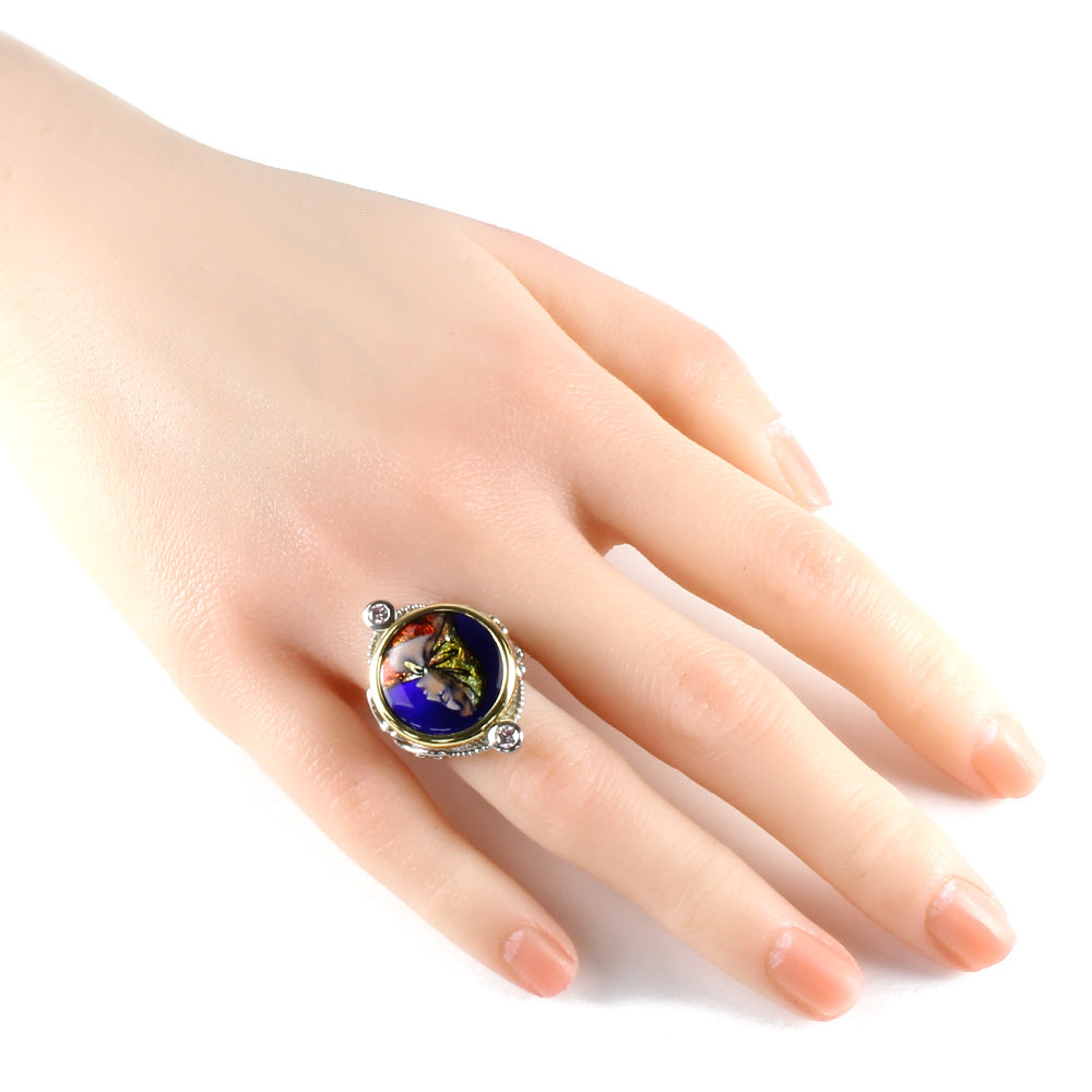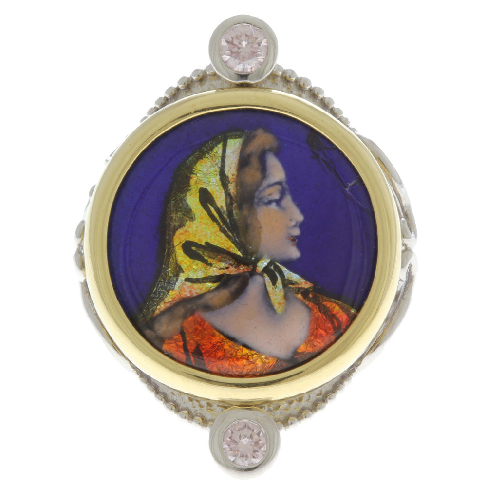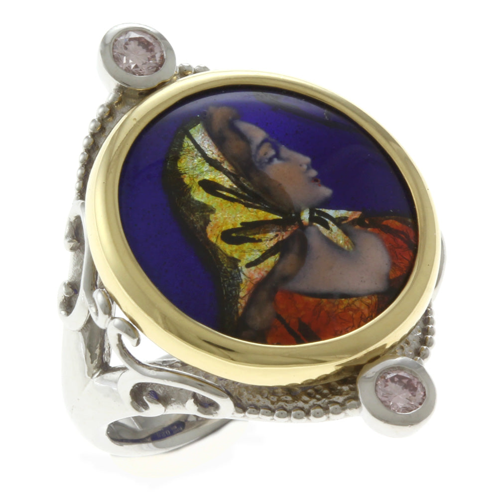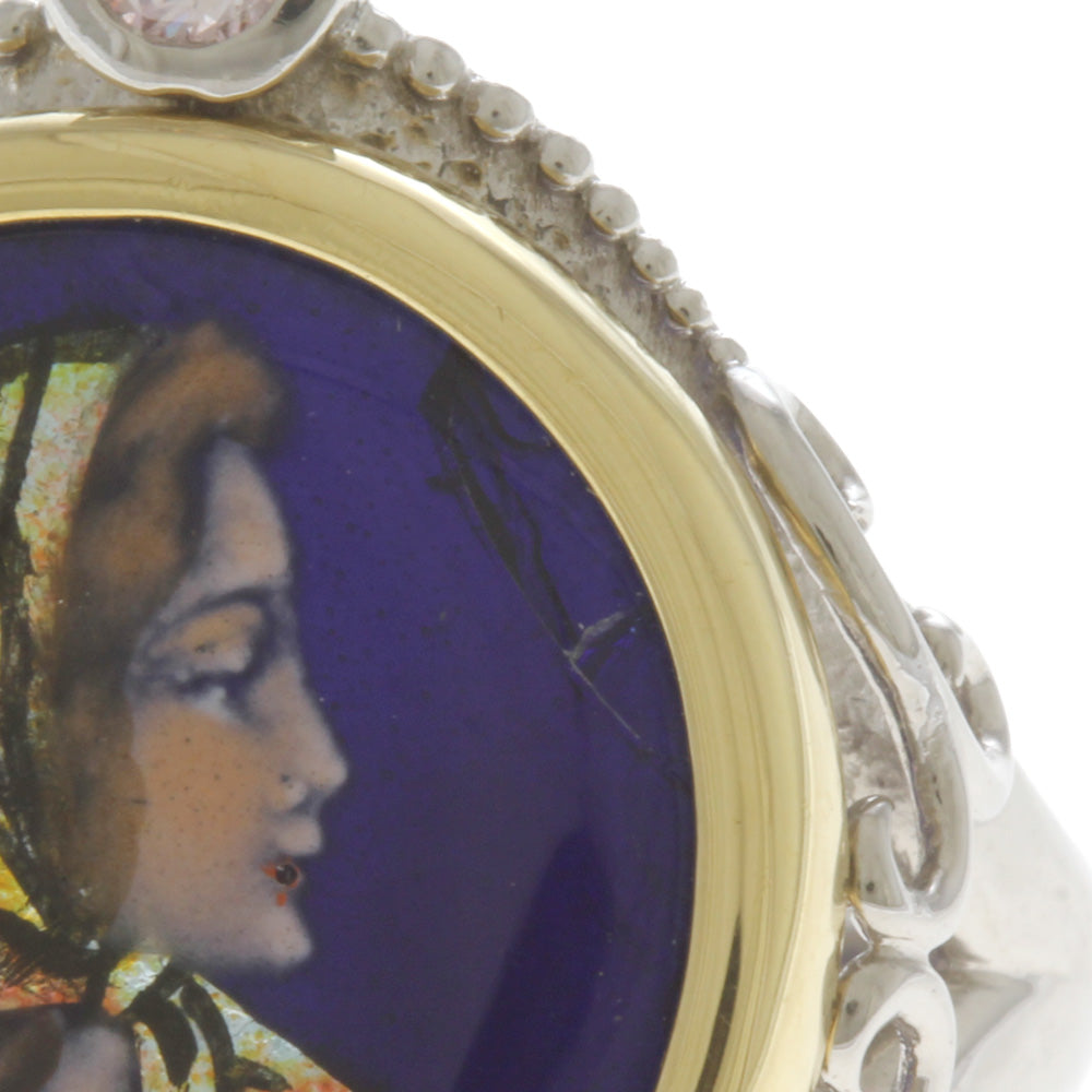 作家 梶光夫 エマーユ 七宝焼き リング 指輪 14号 Pt900プラチナ ピンクダイヤモンド 0.25ct レディース 中古
