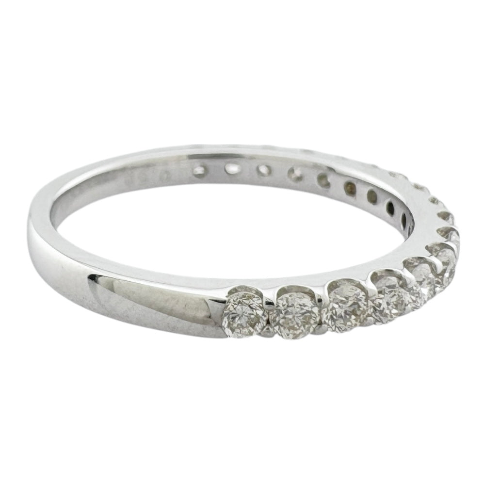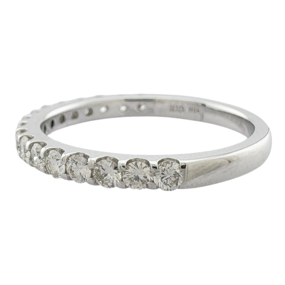凛とした輝きのK18WGに、上質なダイヤモンドが一列に並ぶ王道ハーフエタニティ。重ね付けにも最適で、手元に途切れぬ美しい輝きをもたらします。