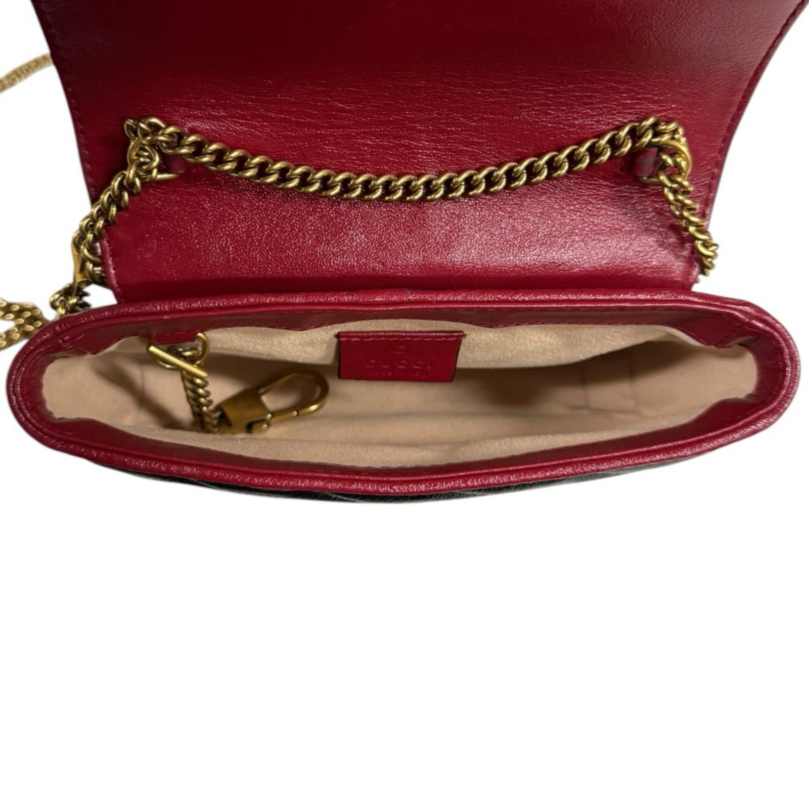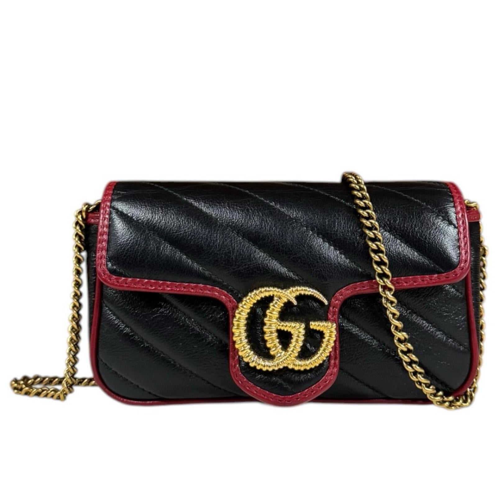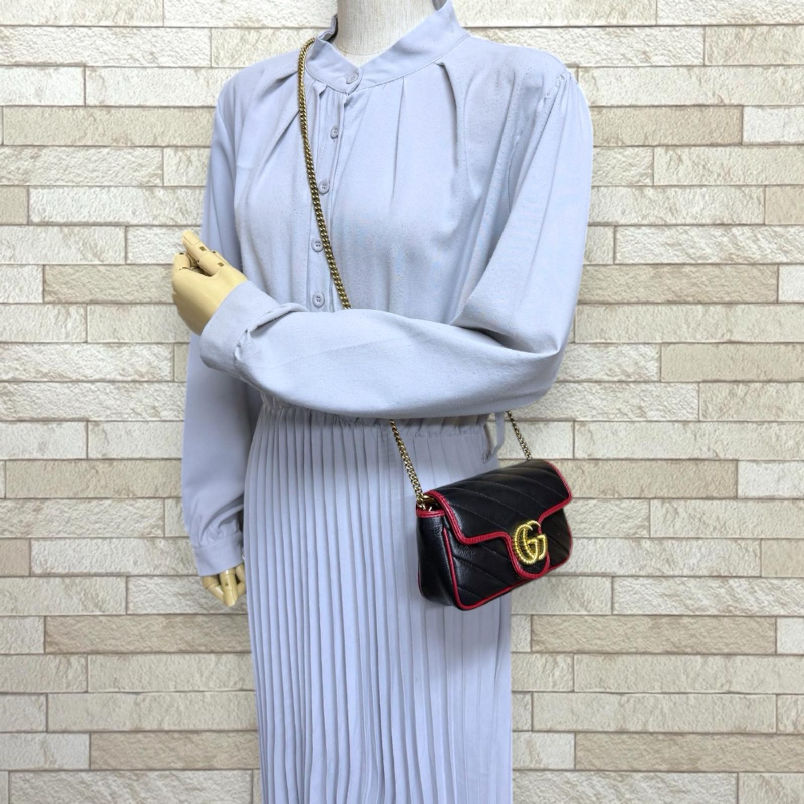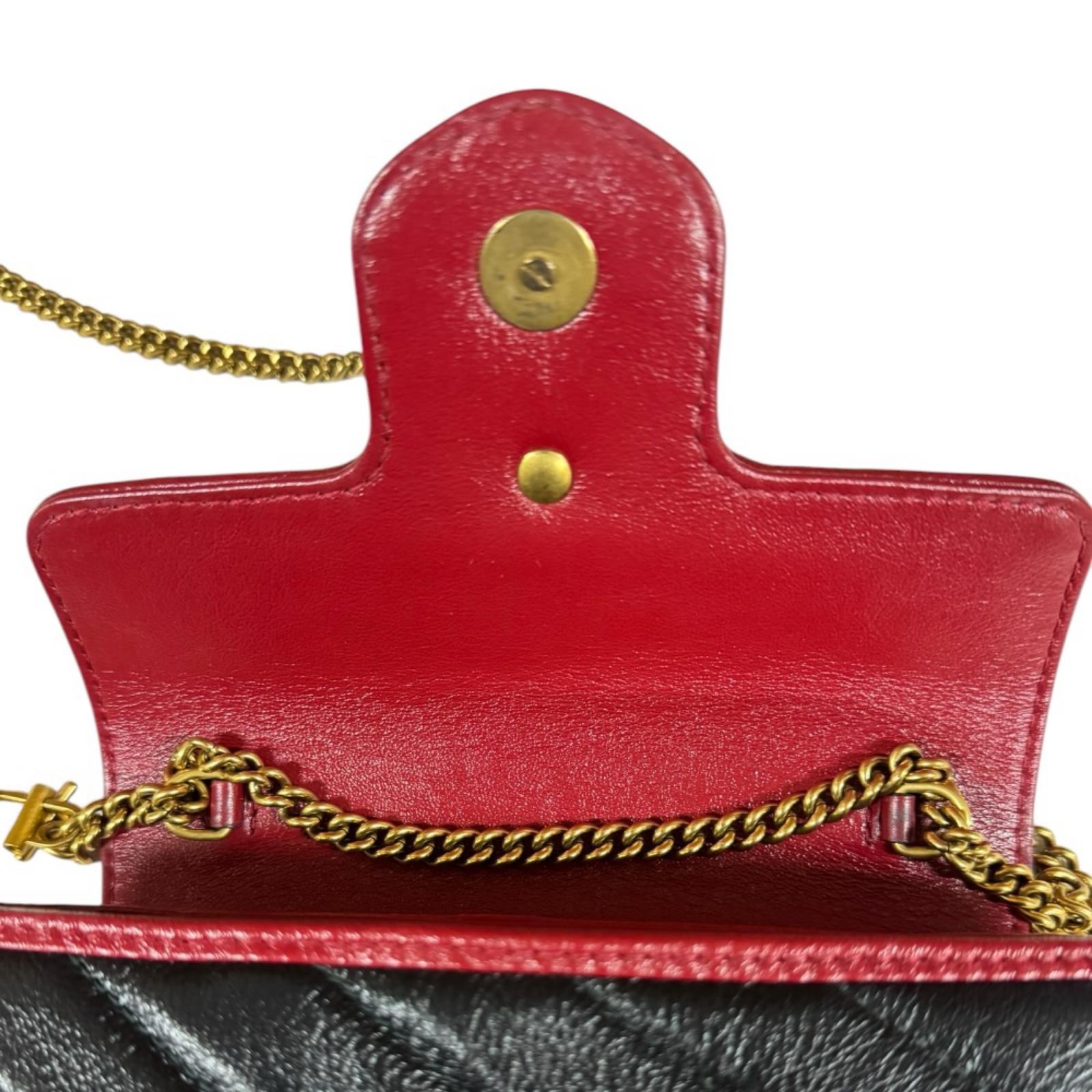 GUCCI 古驰 超级迷你包 GG Marmont 单肩包 皮革 黑色 女士二手