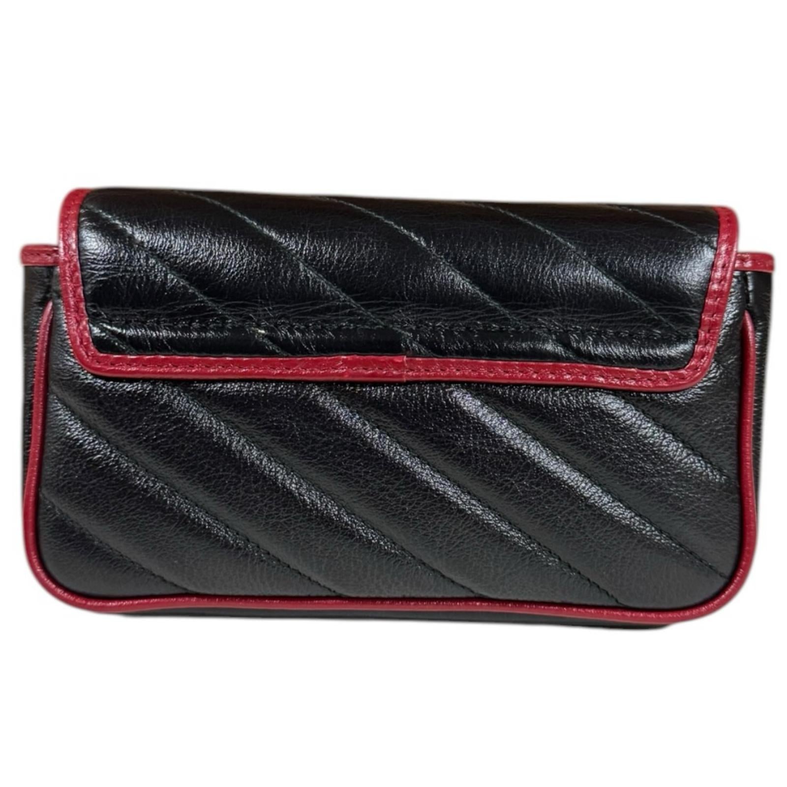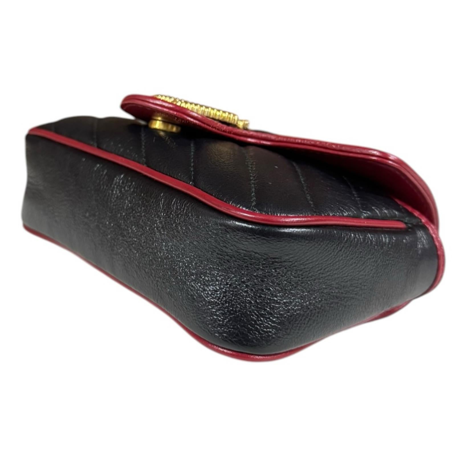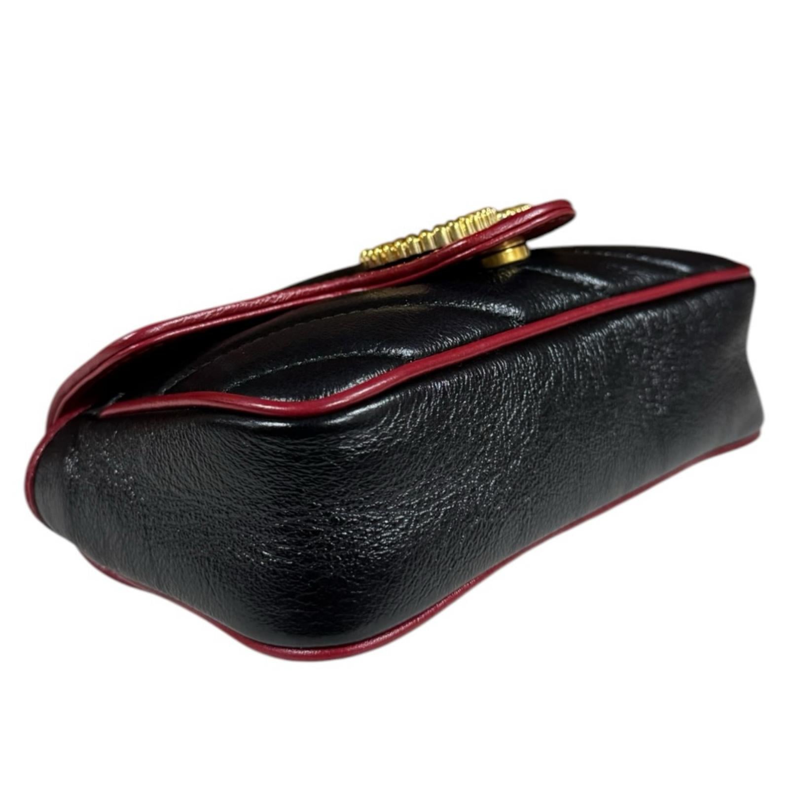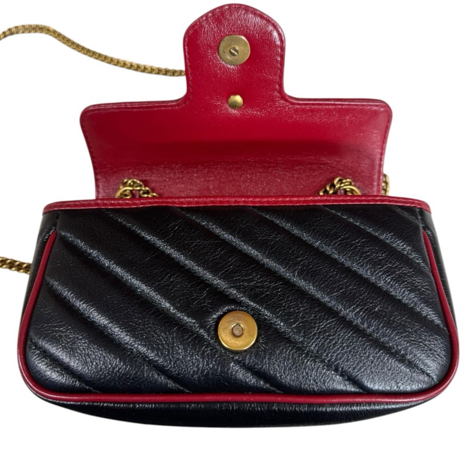 GUCCI 古驰 超级迷你包 GG Marmont 单肩包 皮革 黑色 女士二手