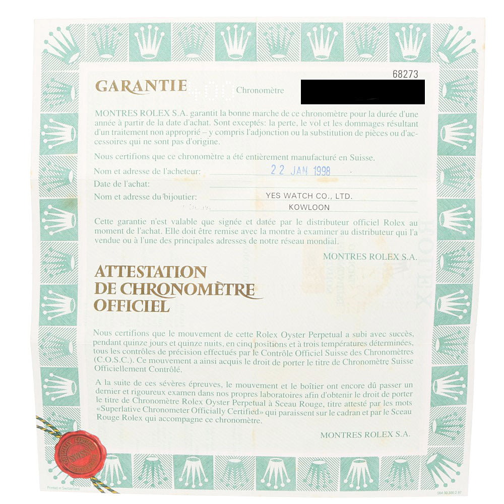 运动:自动绕组 在2025年4月重新上涨 购买日期:1998年1月 |