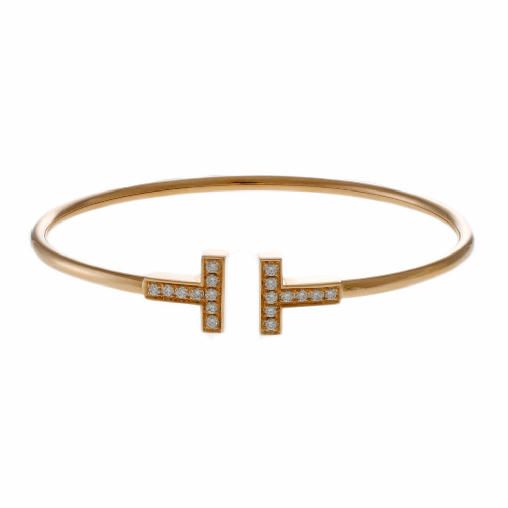 蒂芙尼 TIFFANY&Co. T 线手镯 18k 玫瑰金钻石女士二手