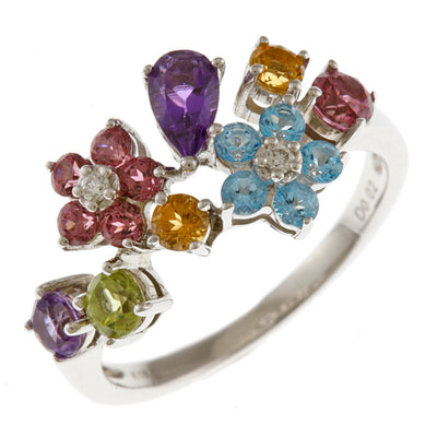 [二手] Ponte Vecchio K18WG 戒指 粉红蓝宝石 钻石花 12 号 18K K18 白金 银 女士 [SH] [BJ] [BIM]