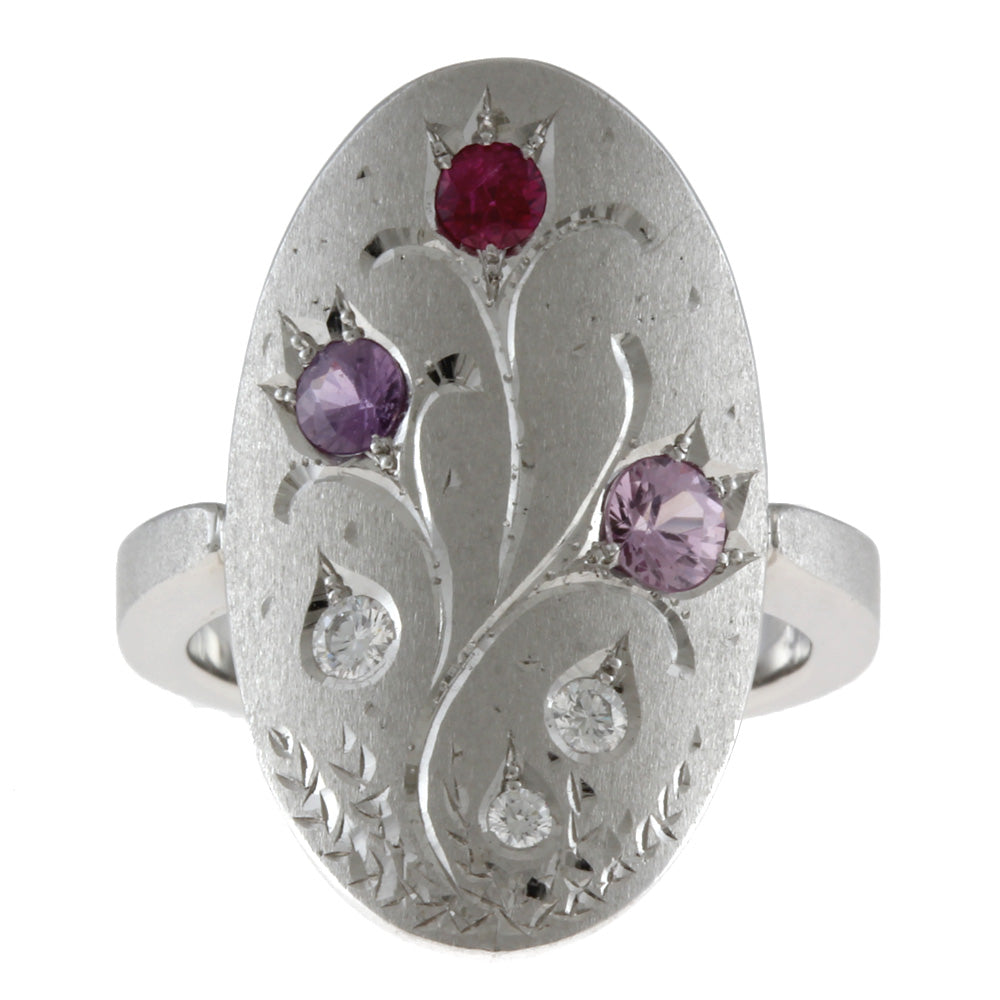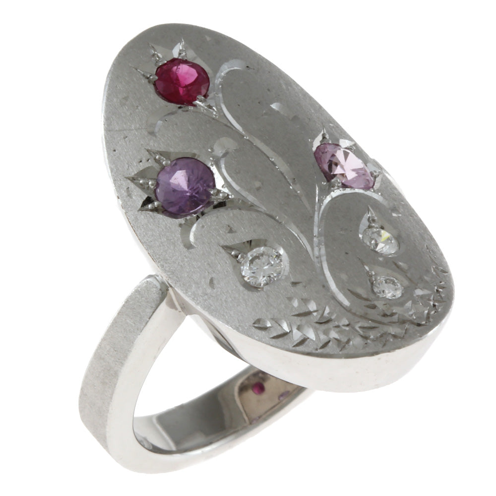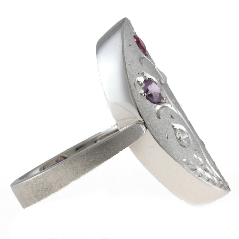 [作者] Kenji Kiuchi 花戒指/戒指 No. 10.5 18K K18 白金粉红蓝宝石 0.47 克拉 钻石 0.10 克拉 女士二手