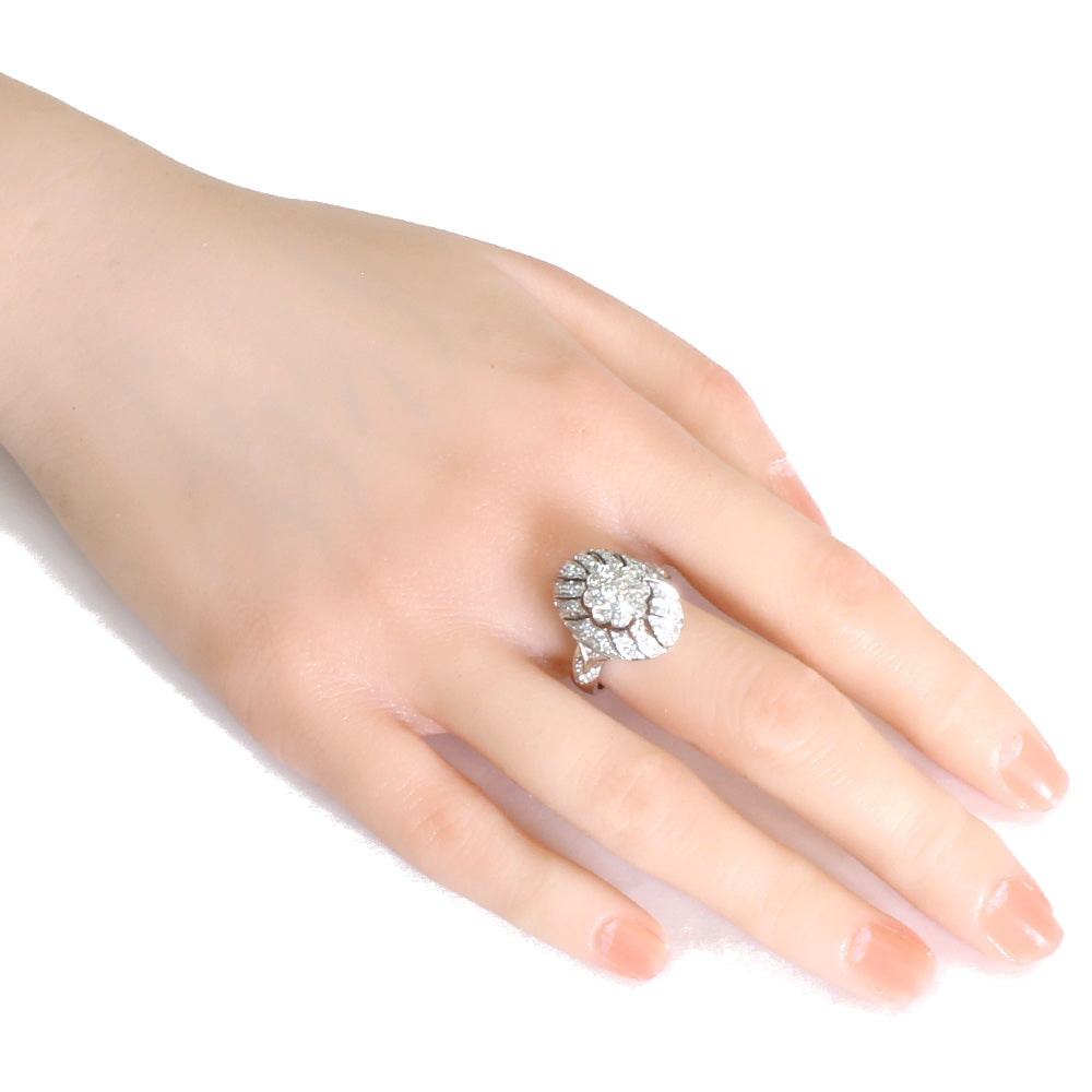意大利制造花戒指尺寸 14.5 18K K18 白金钻石 0.93 克拉女式二手