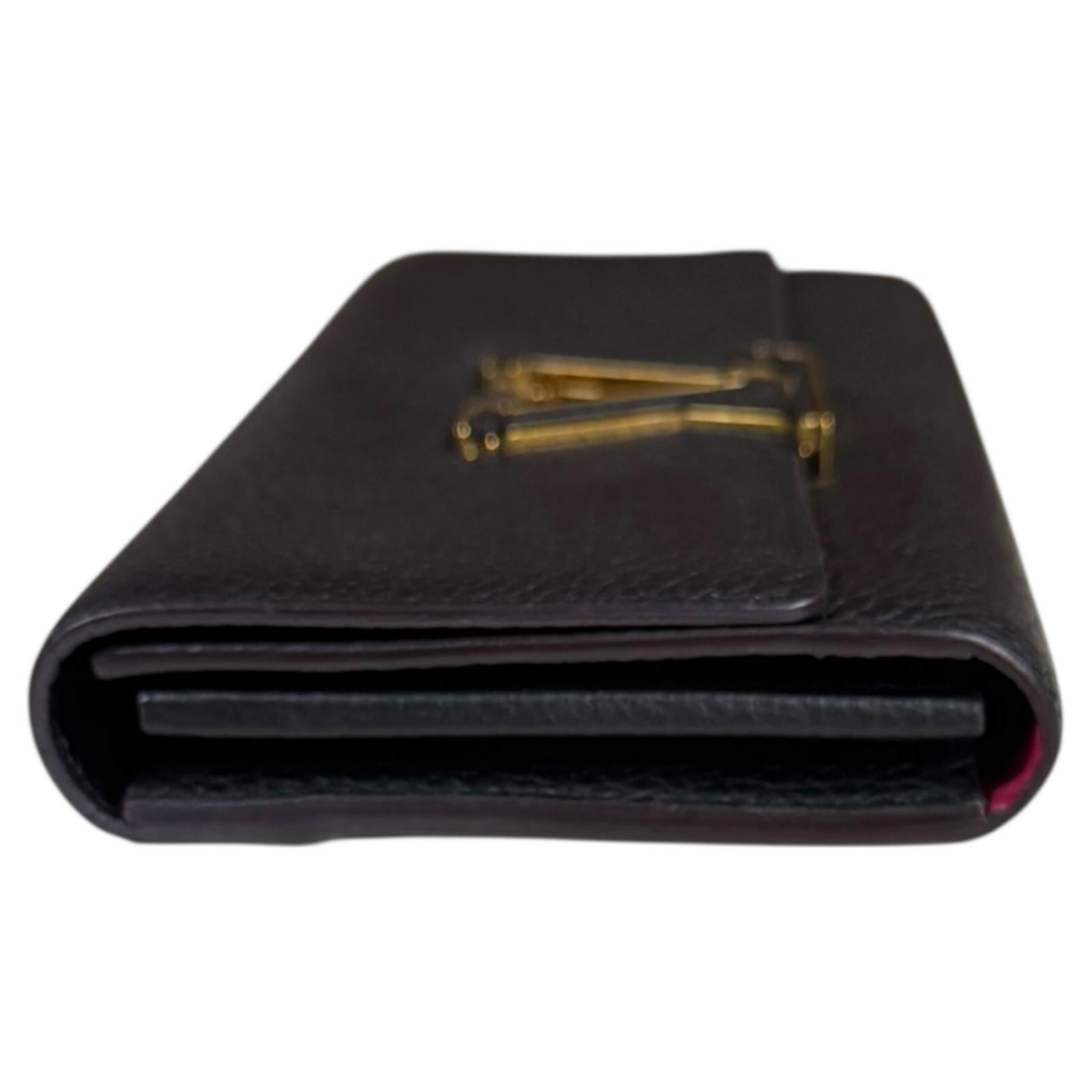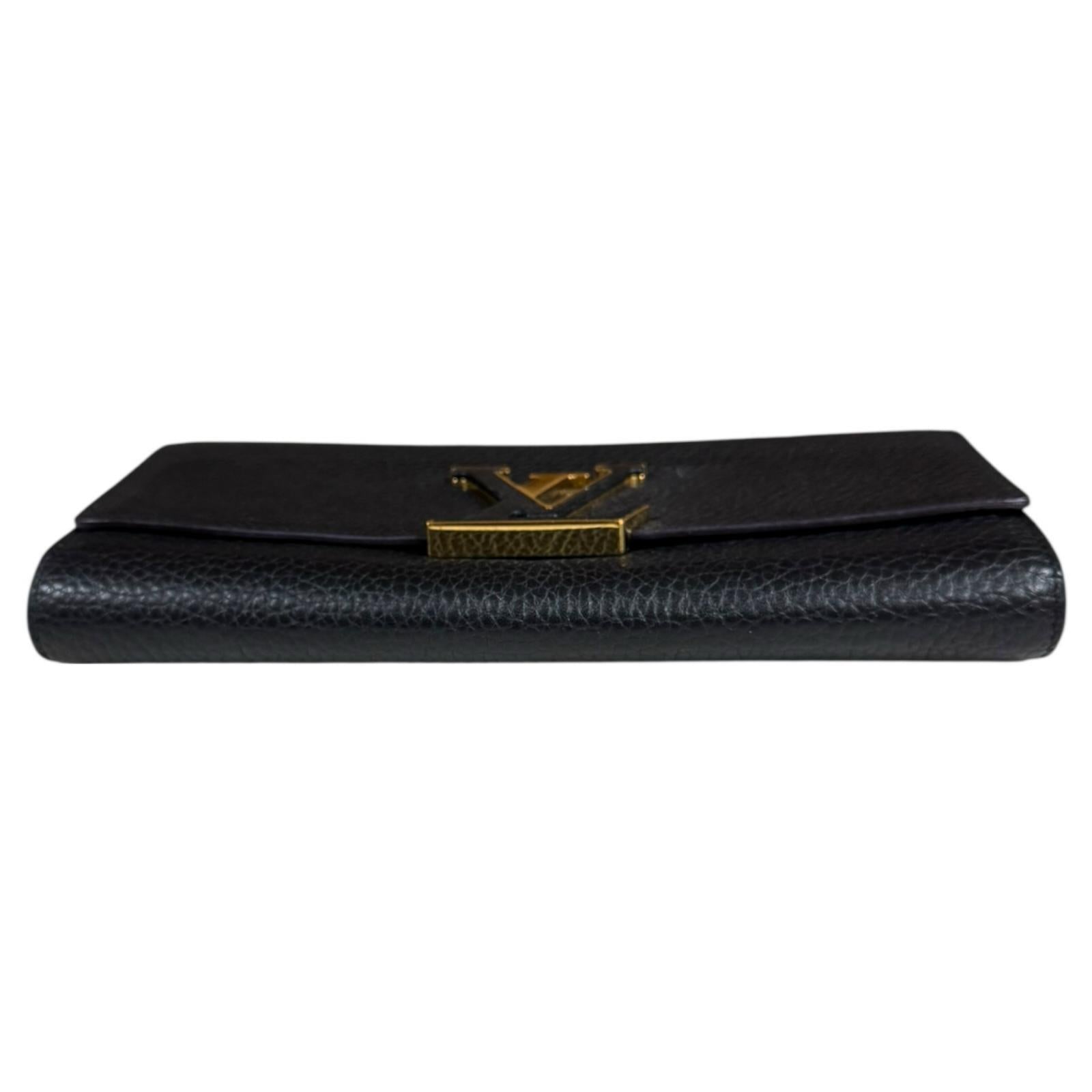 Portefeuille Capucines 采用柔软的 Taurillon 皮革制成,带有皮革涂层 LV 标志。这款优雅钱包的灵感源自品牌标志性的 Capucines 系列。该设计既美观又实用,并且足够大,可以容纳您的日常必需品。