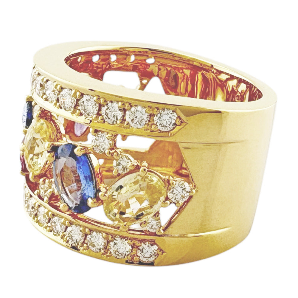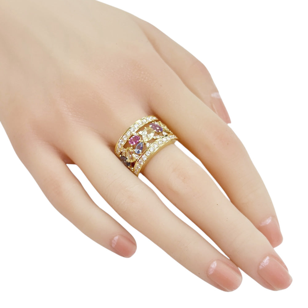 戒指尺寸14,18K K18黄金钻石1.08CT蓝宝石3.61CT妇女使用